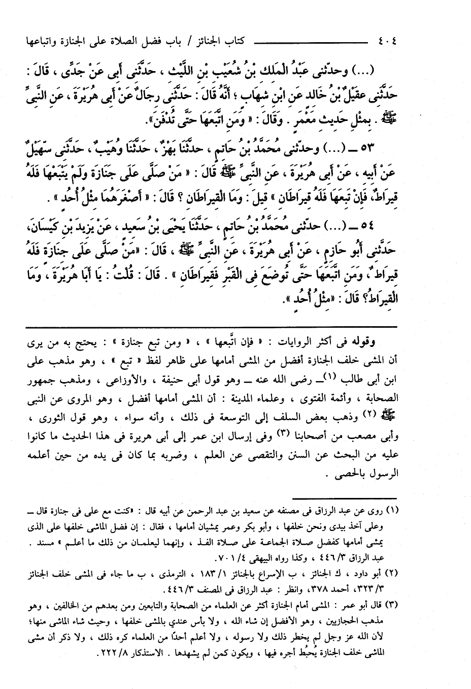 (¬2) أبو داود، ك الجنائز، ب الإسراع بالجنائز 1/ 183، الترمذى، ب ما جاء فى المشى خلف الجنائز 3/ 323، أحمد 378، وانظر: عبد الرزاق فى المصنف 3/ 446.