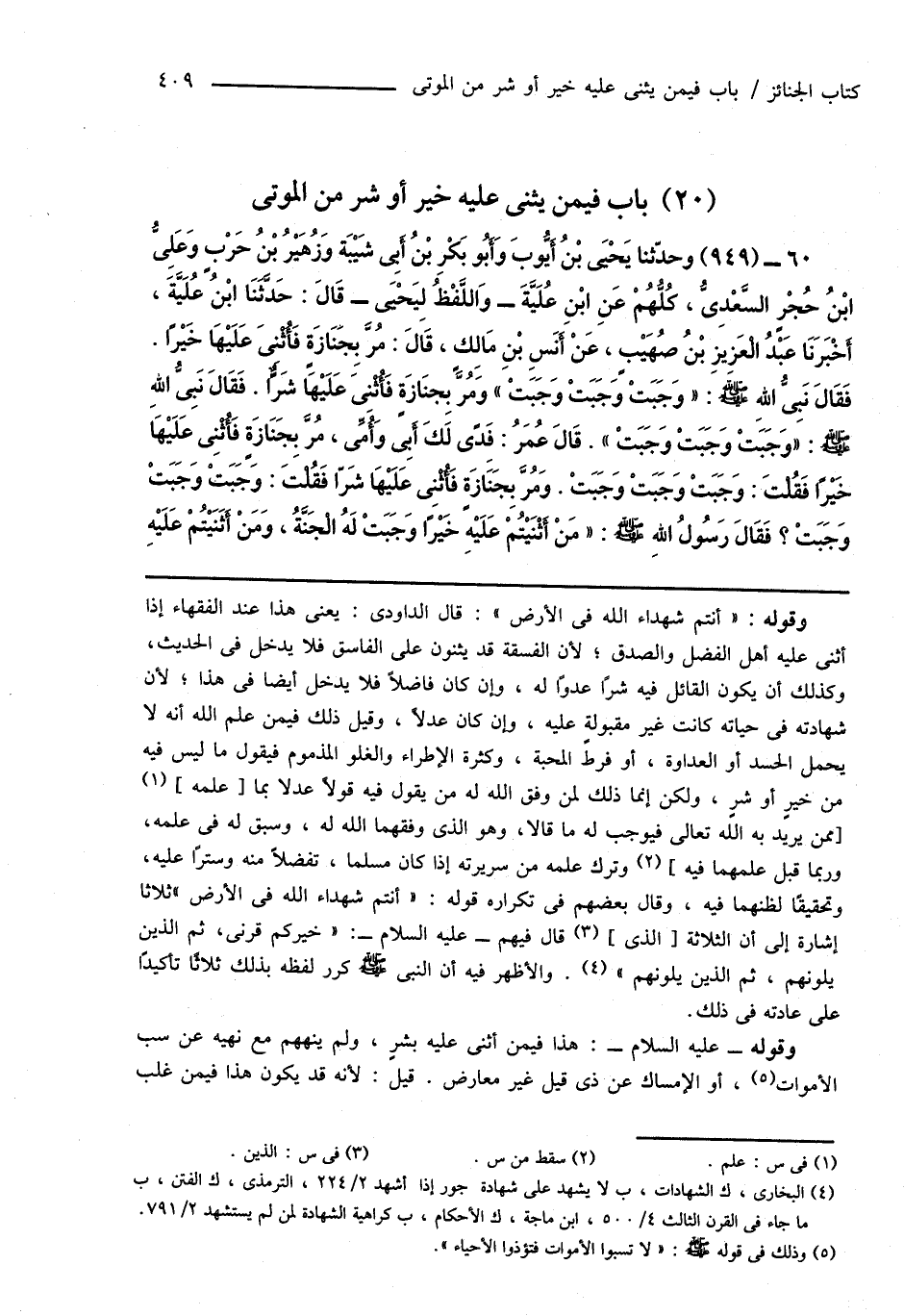 (20) باب فيمن يثنى عليه خير أو شر من الموتى