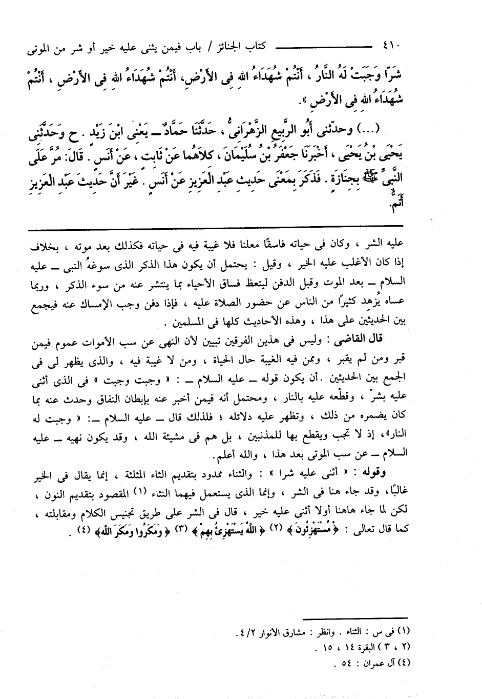 وقوله: " أثنى عليه شرًا ": والثناء ممدود بتقديم الثاء المثلثة، إنما يقال فى الخير غالبًا، وقد جاء هنا فى الشر، وإنما الذى يستعمل فيهما النثاء (¬1) المقصود بتقديم النون، لكن لما جاء هاهنا أولاً أثنى عليه خير، قال فى الشر على طريق تجنيس الكلام ومقابلته، كما قال تعالى: {مُسْتَهْزِئُونَ} (¬2) {اللَّهُ يَسْتَهْزِئُ بِهِمْ} (¬3) {وَمَكَرُوا وَمَكَرَ اللَّه} (¬4).