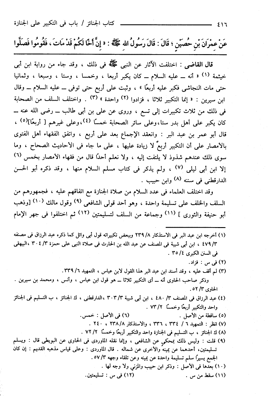 (¬1) أخرجه ابن عبد البر فى الاستذكار 8/ 239 وببعض تكبيراته قول أبى وائل كما ذكره عبد الرزاق فى مصنفه 3/ 479، ابن أبى شيبة فى المصنف عن عبد الله بن الحارث فى صلاة النبى على حمزة 3/ 304، البيهقى فى السنن الكبرى 4/ 35.