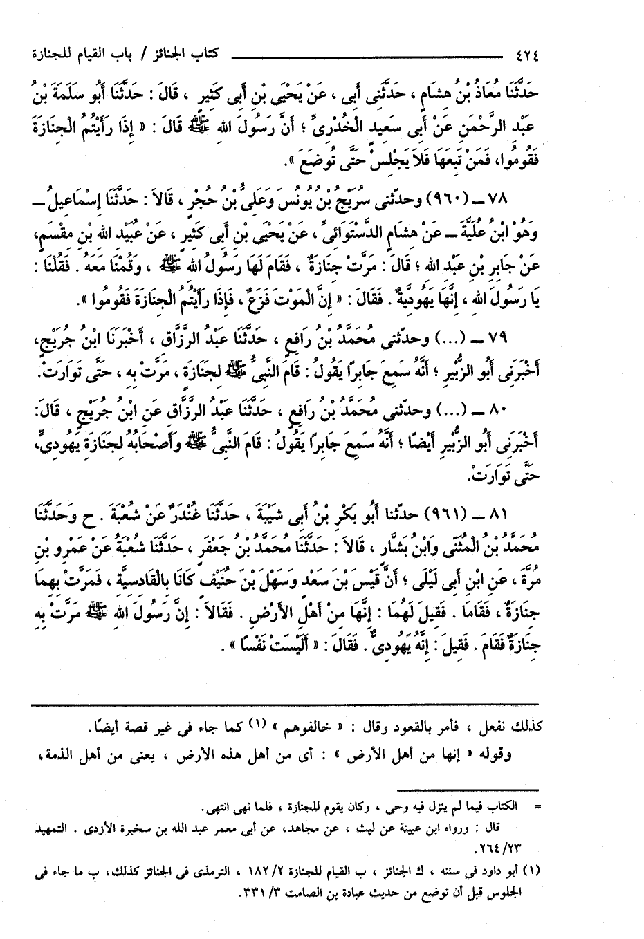 80 - (...) وحدَّثنى مُحَمَّدُ بْنُ رَافِعٍ، حَدَّثَنَا عَبْدُ الرَّزَّاقِ عَنِ ابْنُ جُرَيْجٍ، قَالَ: أَخْبَرَنِى أَبُو الزُّبْيرِ أَيْضًا؛ أَنَّهُ سَمِعَ جَابِرًا يَقُولُ: قَامَ النَّبِىُّ صَلَّى اللهُ عَلَيْهِ وَسَلَّمَ وَأَصْحَابُهُ لِجَنَازَةِ يَهُودِىٍّ، حَتَّى تَوَارَتْ.
