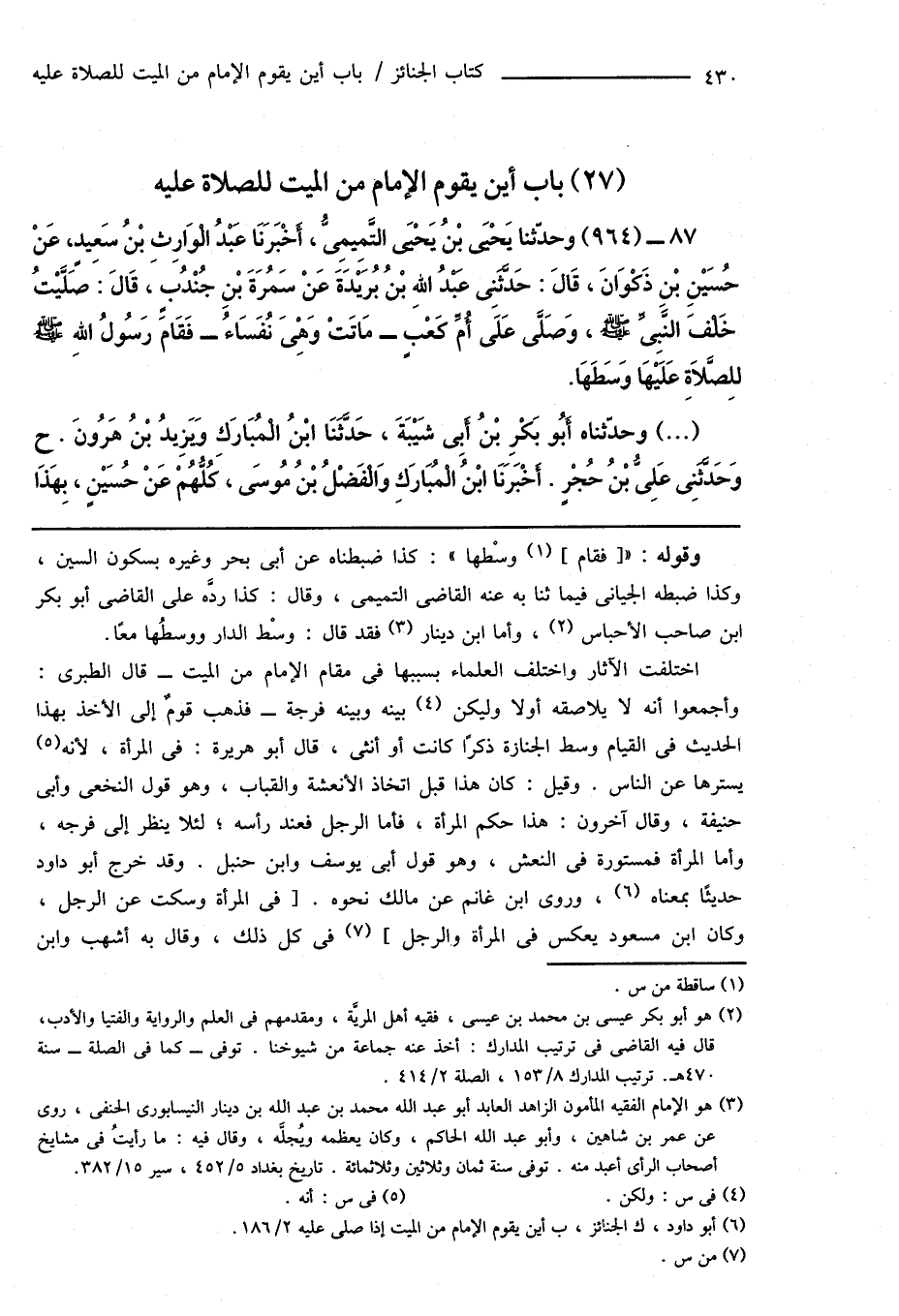 (¬6) أبو داود، ك الجنائز، ب أين يقوم الإمام من الميت إذا صلى عليه 2/ 186.