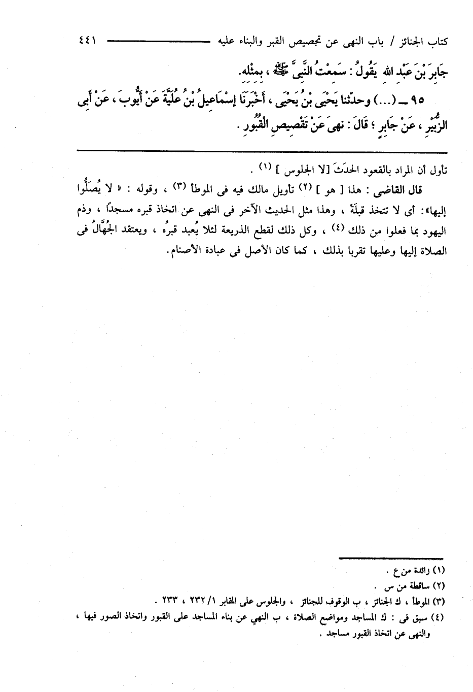 (¬3) الموطأ، ك الجنائز، ب الوقوف للجنائز، والجلوس على المقابر 1/ 232، 233.
