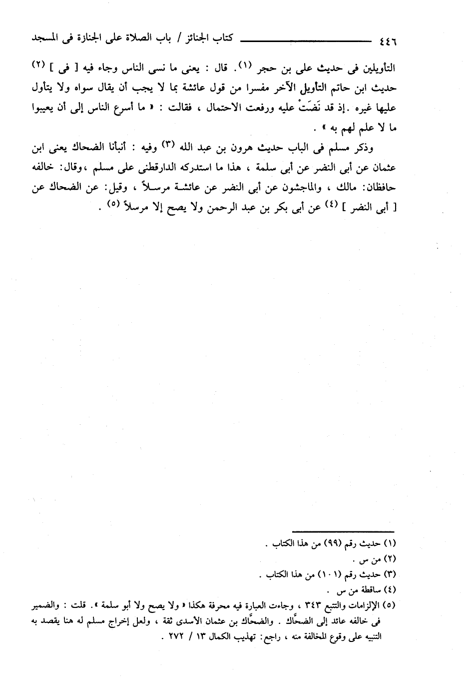 (¬5) الإلزامات والتتبع 343، وجاءت العبارة فيه محرفة هكذا " ولا يصح ولا أبو سلمة ". قلت: والضمير فى خالفه عائد إلى الضَّحَّاك. والضحَّاك بن عثمان الأسدى ثقة، ولعل إخراج مسلم له هنا يقصد به التنبيه على وقوع المخالفة منه، راجع: تهذيب الكمال 13/ 272.