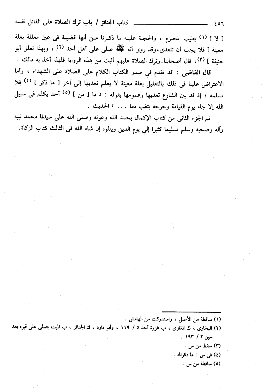 تم الجزء الثانى من كتاب الإكمال بحمد الله وعونه وصلى الله على سيدنا محمد نبيه وآله وصحبه وسلم تسليماً كثيراً إلى يوم الدين ويتلوه إن شاء الله فى الثالث كتاب الزكاة.