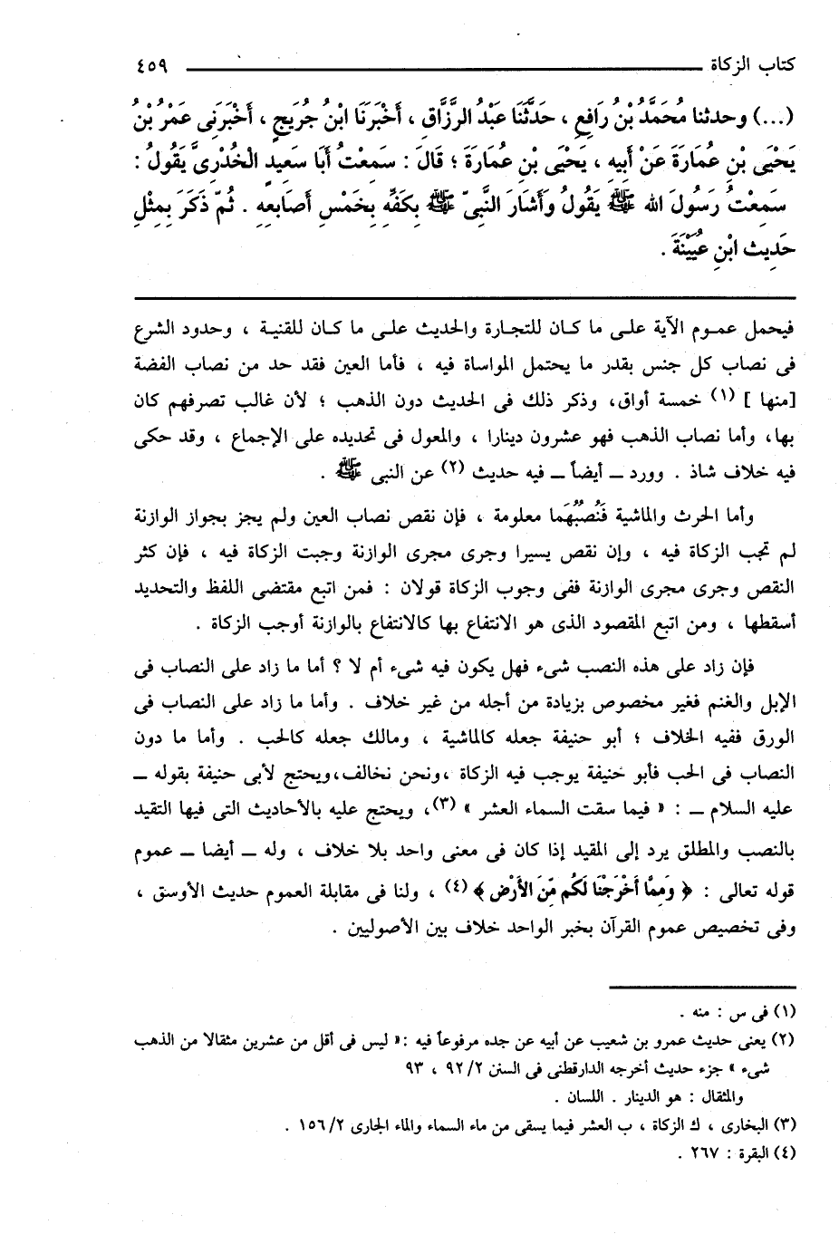 (¬2) يعنى حديث عمرو بن شعيب عن أبيه عن جده مرفوعاً فيه: " ليس فى أقل من عشرين مثقالاً من الذهب شىء " جزء حديث أخرجه الدارقطنى فى السنن 2/ 92، 93