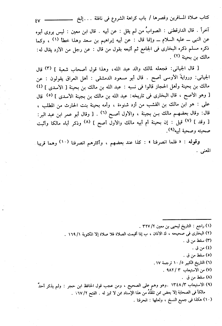 (¬9) الاستيعاب 3/ 1348. وهو وهم على الصحيح، ومن عجب قول الحافظ ابن حجر: ولم يذكر أحدٌ مالكاً فى الصحابة إلا بعض ممن تلقَّاهُ من هذا الإسناد ممن لا تميز له. الفتح 2/ 167.