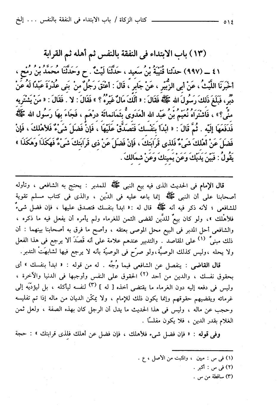 (13) باب الابتداء فى النفقة بالنفس ثم أهله ثم القرابة