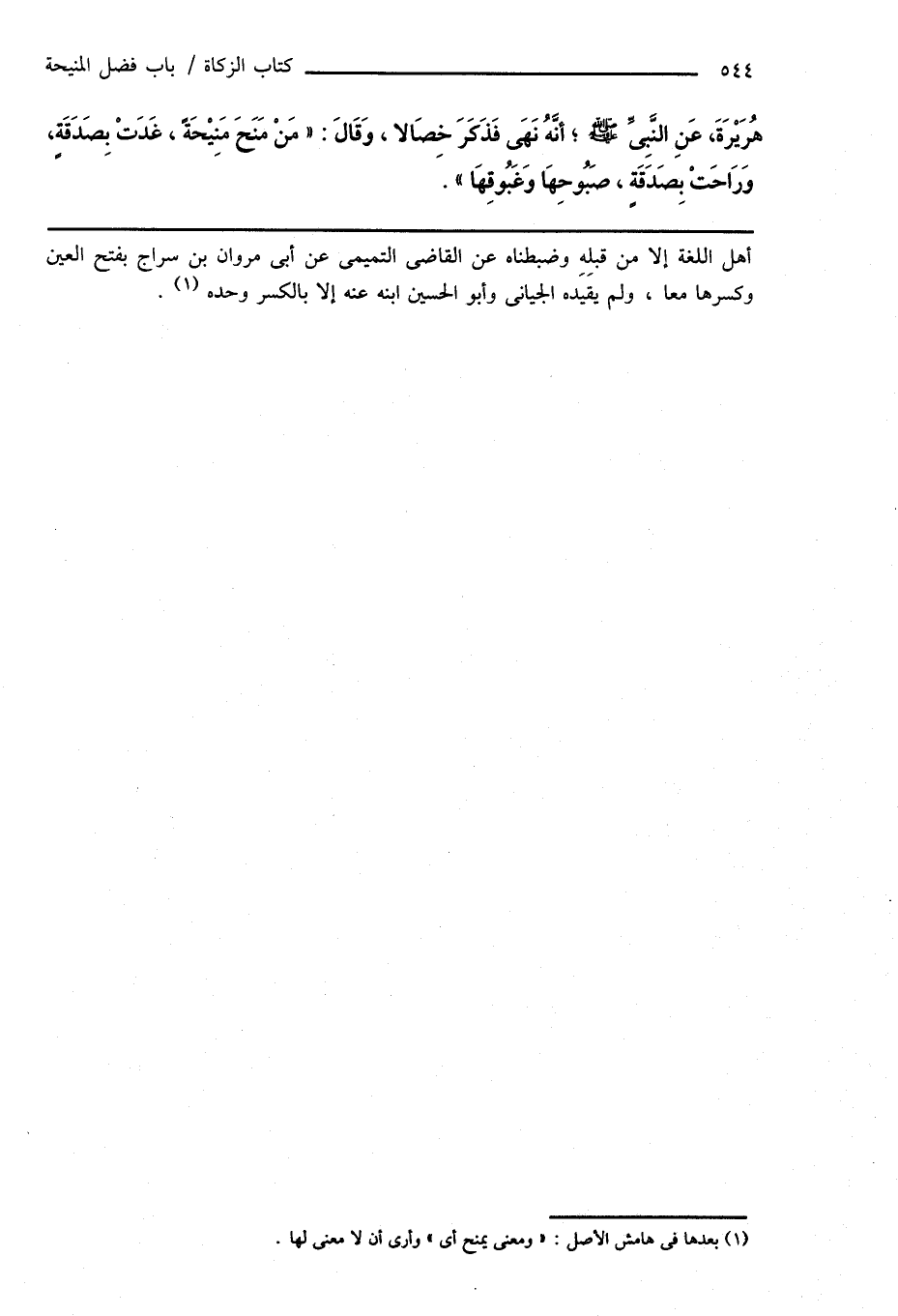 هُرَيْرَةَ، عَنِ النَّبِىِّ صَلَّى اللهُ عَلَيْهِ وَسَلَّمَ؛ أَنَّهُ نَهَى فَذَكَرَ خِصَالاً، وَقَالَ: " مَنْ مَنَحَ مَنِيْحَةً، غَدَتْ بِصَدَقَةٍ، وَرَاحَتْ بِصَدَقَةٍ، صَبُوحِهَا وَغَبُوقِهَا ".