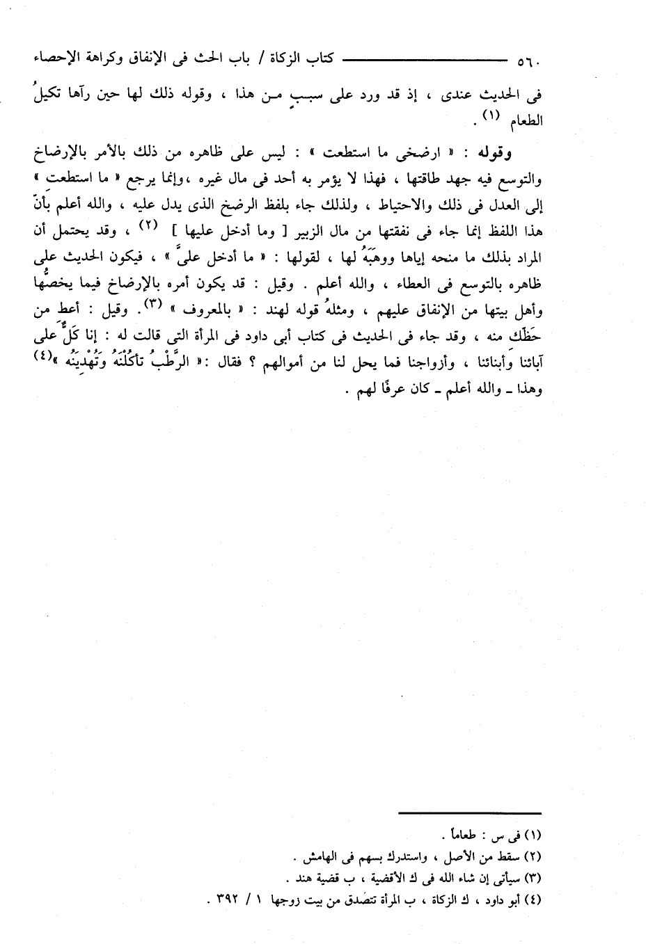 (¬4) أبو داود، ك الزكاة، ب المرأة تتصدق من بيت زوجها 1/ 392.
