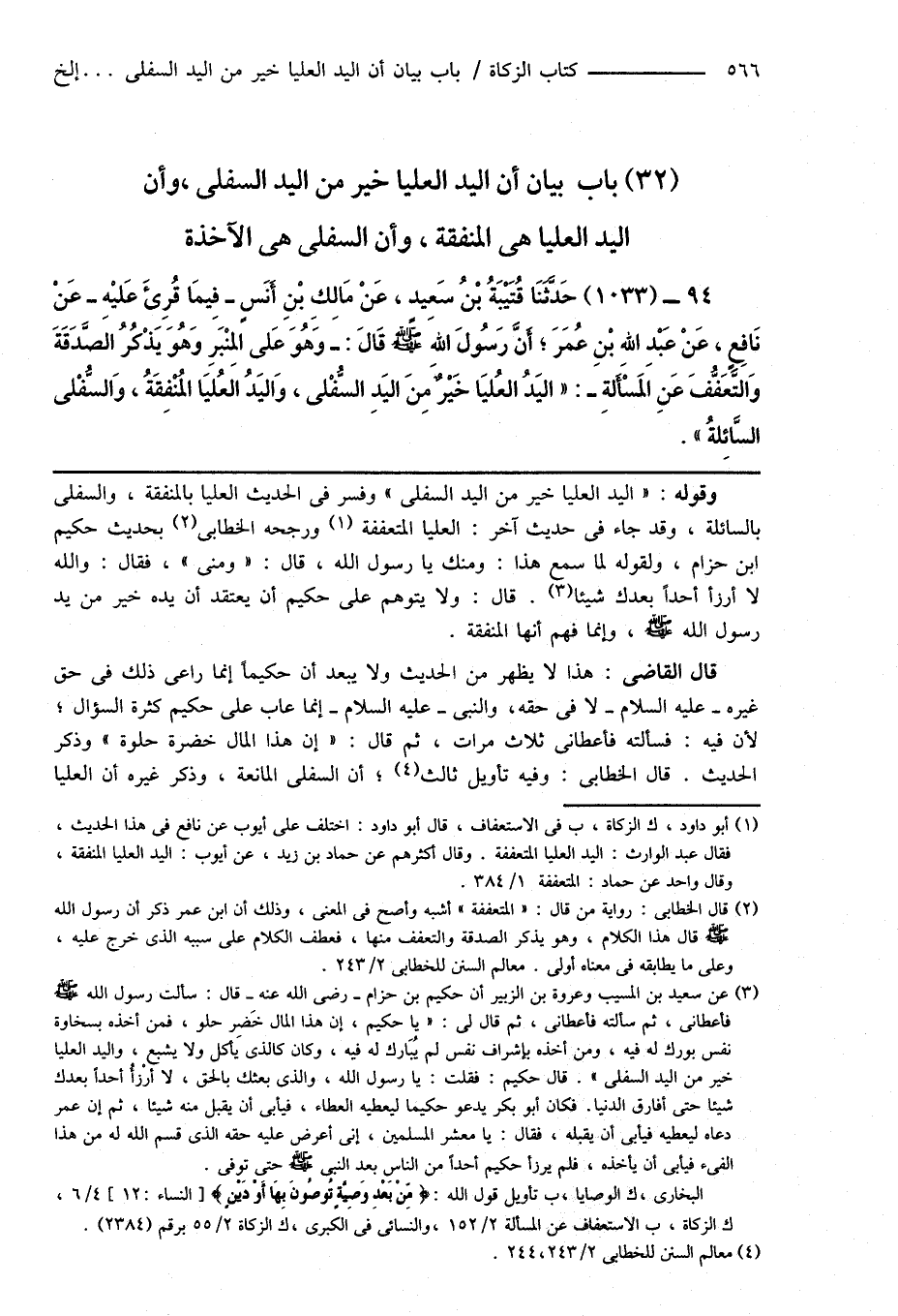 (32) باب بيان أن اليد العليا خير من اليد السفلى، وأن اليد العليا هى المنفقة، وأن السفلى هى الآخذة