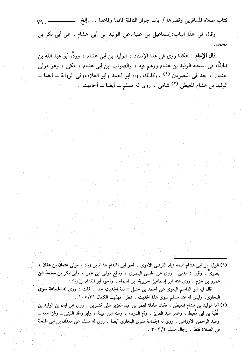 وقال فى هذا الباب: إسماعيل بن علية، عن الوليد بن أبى هشام، عن أبى بكر بن محمد.