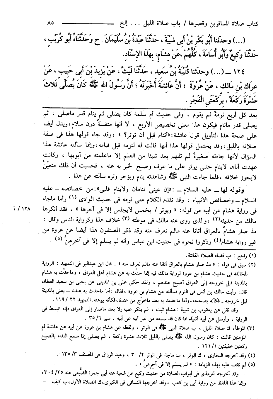 124 - (...) وحدّثنا قُتَيْبَةُ بْنُ سَعِيدٍ، حَدَّثَنَا لَيْثٌ، عَنْ يَزِيدَ بْنَ أَبِى حَبِيبٍ، عَنْ عِرَاكِ بْنِ مَالِكٍ، عَنْ عُرْوَةَ؛ أَنَّ عَائِشَةَ أَخْبَرَتْهُ؛ أَنَّ رَسُولَ اللهِ صَلَّى اللهُ عَلَيْهِ وَسَلَّمَ كَانَ يُصَلِّى ثَلاثَ عَشْرَةَ رَكْعَةً، بِرَكْعَتَىِ الْفَجْرِ.