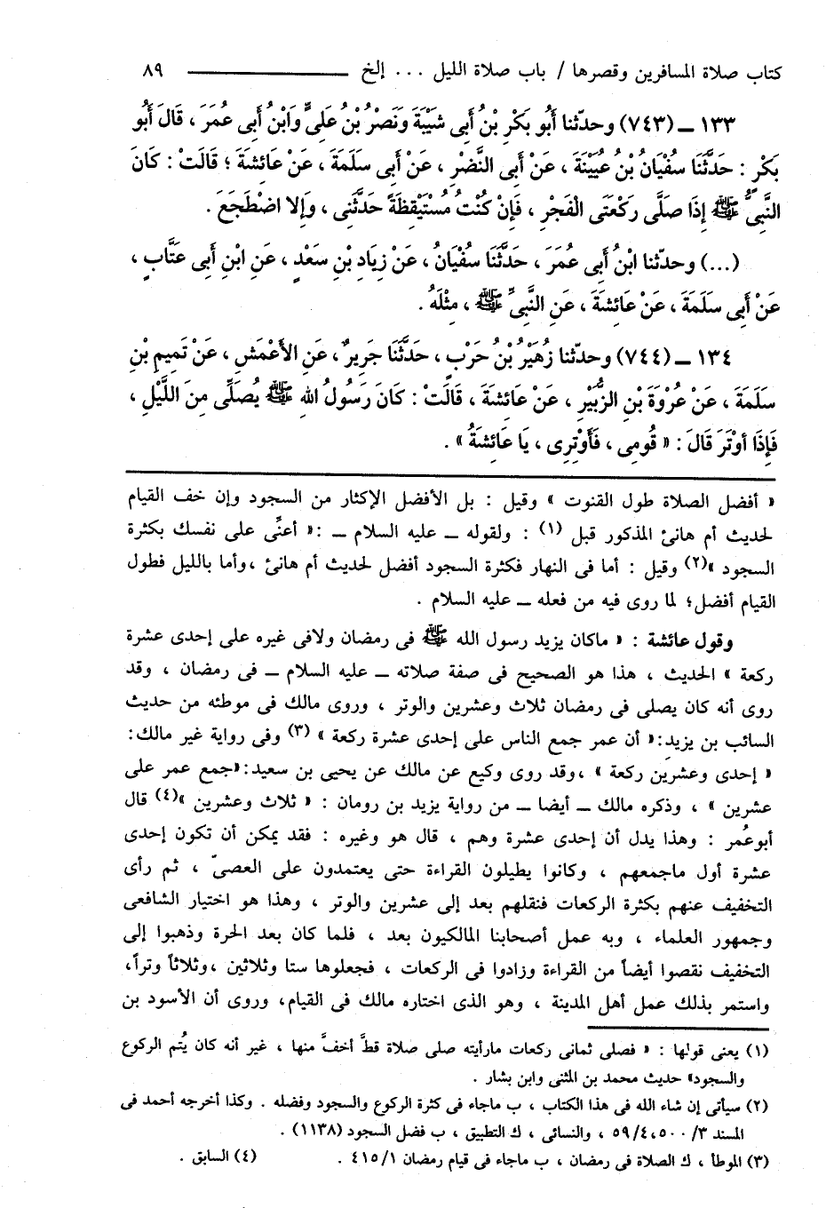(¬1) يعنى قولها: " فصلى ثمانى ركعات ما رأيته صلى صلاة قطَّ أخفَّ منها، غير أنه كان يُتم الركوع والسجود " حديث محمد بن المثنى وابن بشار.