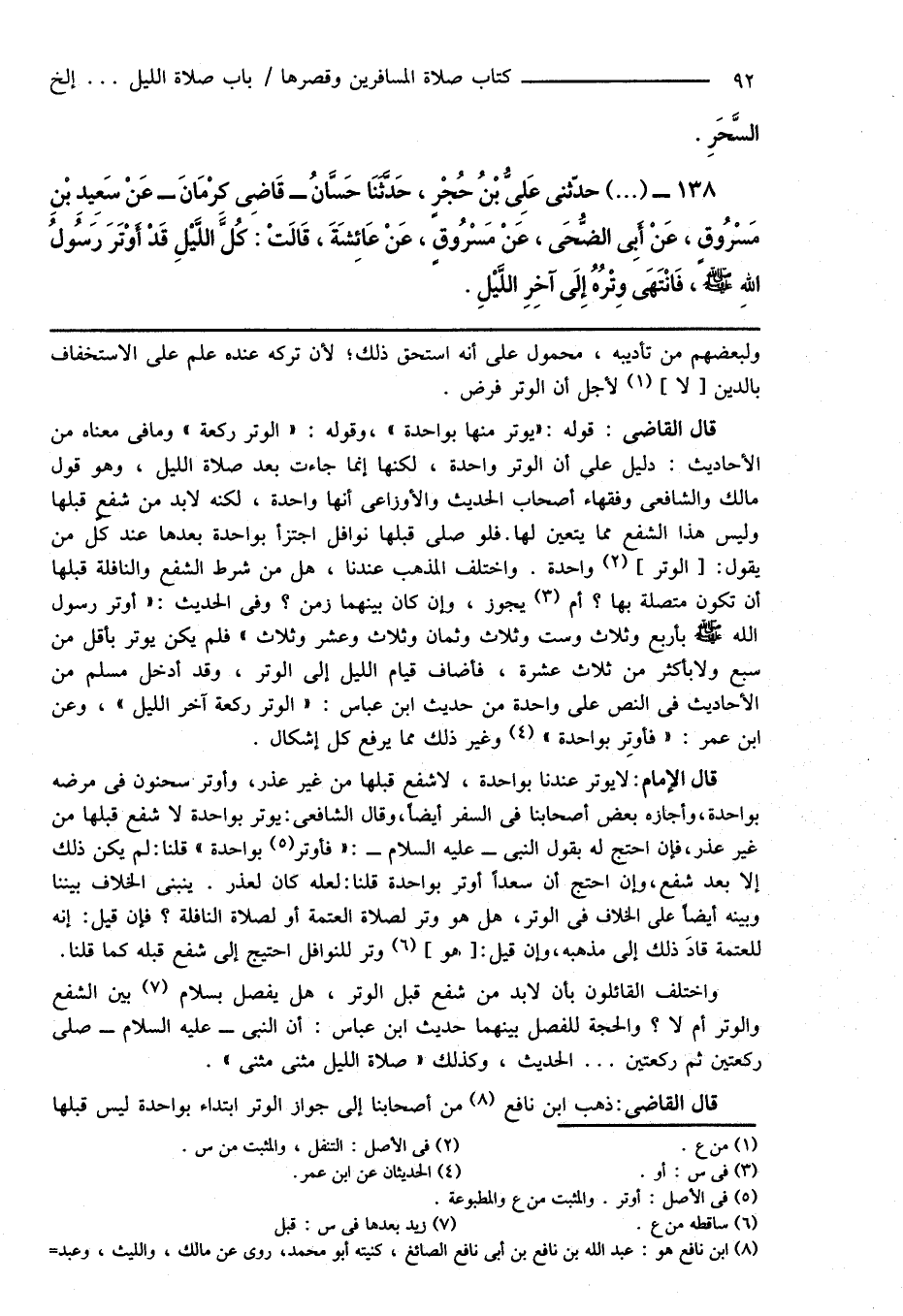 138 - (...) حدّثنى عَلِىُّ بْنُ حُجْرٍ، حَدَّثَنَا حَسَّانُ - قَاضِى كَرْمَانَ - عَنْ سَعِيدِ بْنِ مَسْرُوقٍ، عَنْ أَبِى الضُّحَى، عَنْ مَسْرُوقٍ، عَنْ عَائِشَةَ، قَالَتْ: كُلَّ اللَّيْلِ قَدْ أَوْتَرَ رَسُولُ اللهِ صَلَّى اللهُ عَلَيْهِ وَسَلَّمَ، فَانْتَهَى وِتْرُهُ إِلَى آخِرِ اللَّيْلِ.