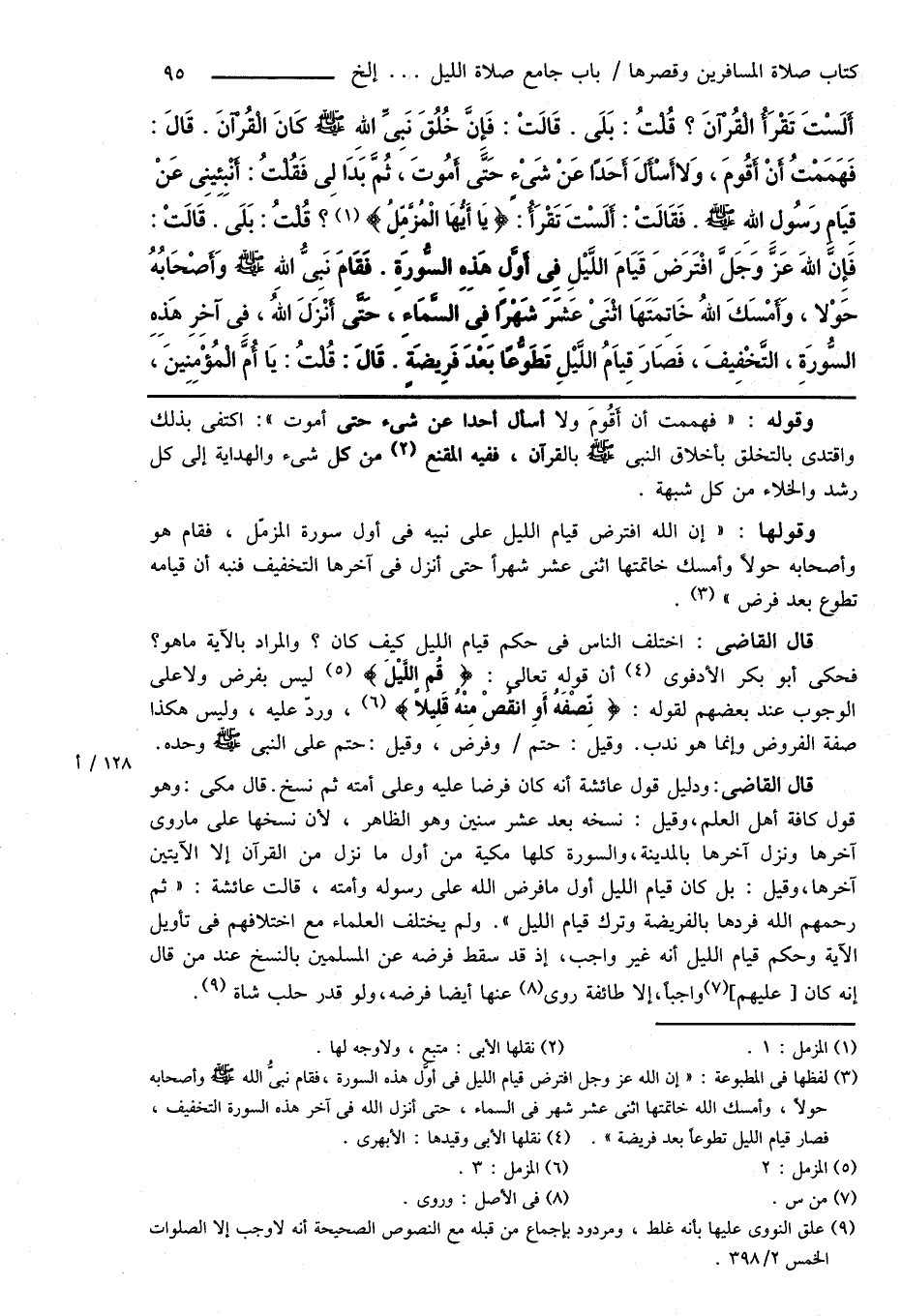 وقولها: " إن الله افترض قيام الليل على نبيه فى أول سورة المزمّل، فقام هو وأصحابه حولاً وأمسك خاتمتها اثنى عشر شهراً حتى أنزل فى آخرها التخفيف فنبه أن قيامه تطوع بعد فرض " (¬3).