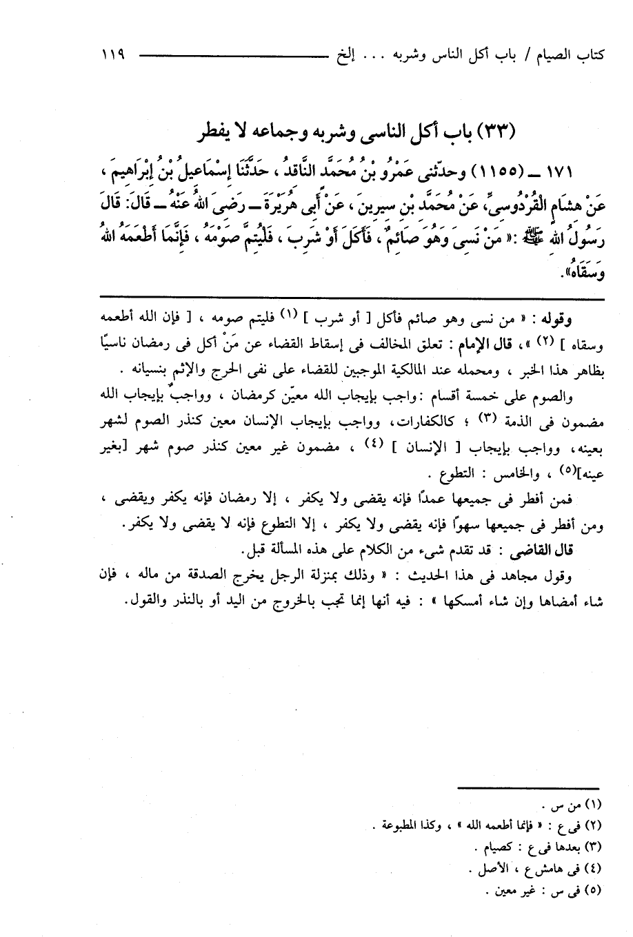 (33) باب أكل الناسى وشربه وجماعه لا يفطر