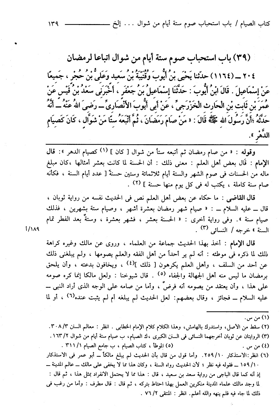 (39) باب استحباب صوم ستة أيام من شوال اتباعاً لرمضان