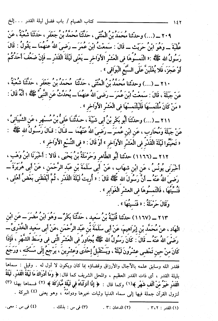 210 - (...) وحدّثنا مُحَمَّدُ بْنُ الْمُثَنَّى، حَدَّثَنَا مُحَمَّدُ بْنُ جَعْفَرٍ، حَدَّثَنَا شُعْبَةُ، عَن جَبَلَةَ، قَالَ: سَمِعْتُ ابْنَ عُمَرَ - رَضِىَ اللهُ عَنْهُمَا - يُحَدِّثُ عَنِ النَّبِىِّ صَلَّى اللهُ عَلَيْهِ وَسَلَّمَ؛ أَنَّهُ قَالَ: " مَنْ كَانَ مُلتَمِسَهَا فَلْيَلْتَمِسْهَا فِى الْعَشْرِ الأَوَاخِرِ ".