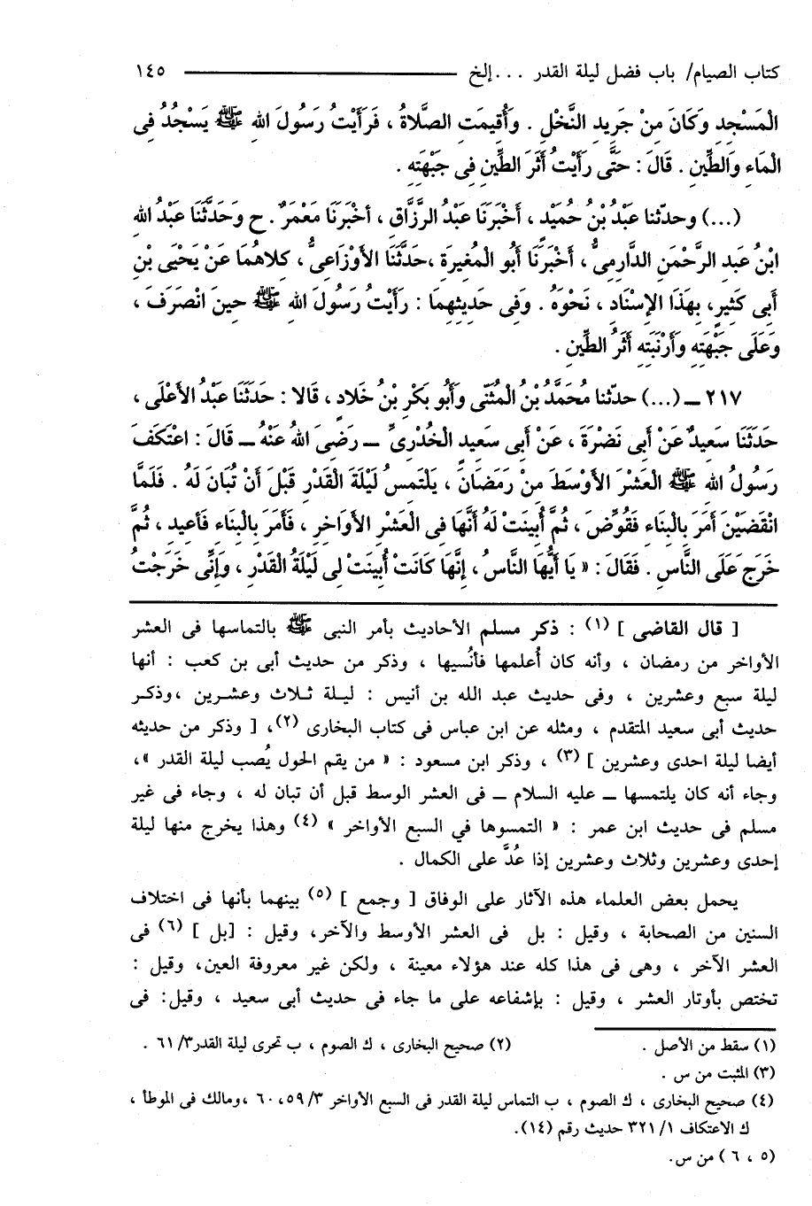 (¬4) صحيح البخارى، ك الصوم، ب التماس ليلة القدر فى السبع الأواخر 3/ 59، 60، ومالك فى الموطأ، ك الاعتكاف 1/ 321 حديث رقم (14).