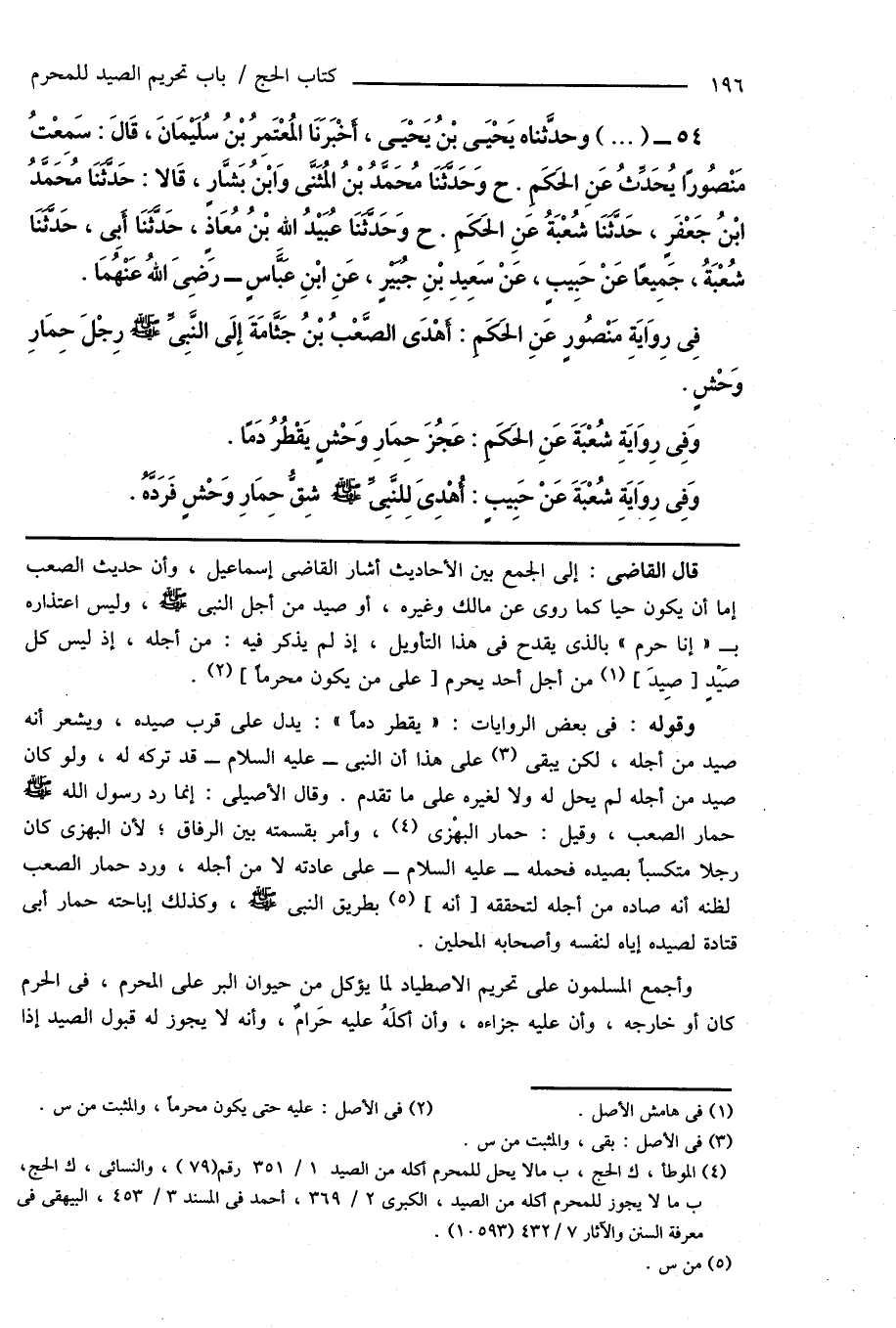 قال القاضى: إلى الجمع بين الأحاديث أشار القاضى إسماعيل، وأن حديث الصعب إما أن يكون حياً كما روى عن مالك وغيره، أو صيد من أجل النبى صَلَّى اللهُ عَلَيْهِ وَسَلَّمَ، وليس اعتذاره بـ " إنا حرم " بالذى يقدح فى هذا التأويل، إذ لم يذكر فيه: من أجله، إذ ليس كل صَيْدٍ [صِيدَ] (¬1) من أجل أحد يحرم [على من يكون محرماً] (¬2).