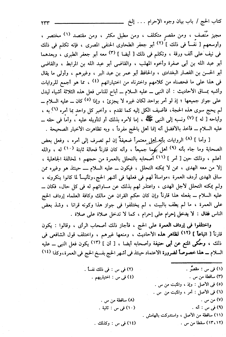 مجيز مُنْصفٍ، ومن مقصر متكلف، ومن مطيل مكثر، ومن مقتصد (¬1) مختصر، وأوسعهم [نفساً فى ذلك] (¬2) أبو جعفر الطحاوى الحنفى المصرى، فإنه تكلم فى ذلك فى نيف على ألف ورقة، وتكلم فى ذلك [أيضاً] (¬3) معه أبو جعفر الطبرى، وبعدهما أبو عبد الله بن أبى صفرة وأخوه المهلب، والقاضى أبو عبد الله بن المرابط، والقاضى أبو الحسن بن القصار البغدادى، والحافظ أبو عمر بن عبد البر، وغيرهم، وأولى ما يقال فى هذا على ما فحصناه من كلامهم واخترناه من اختياراتهم (¬4)، مما هو أجمع للروايات وأشبه بمساق الأحاديث: أن النبى - عليه السلام - أباح للناس فعل هذه الثلاثة أشياء ليدل على جواز جميعها؛ إذ لو أمر بواحد لكان غيره لا يجزئ، وإذا (¬5) كان - عليه السلام - لم يحج سوى هذه الحجة، فأضيف الكل إليه كما تقدم، وأخبر كل واحدٍ بما أمره (¬6) به، وأباحه [له] (¬7) ونسبه إلى النبى صَلَّى اللهُ عَلَيْهِ وَسَلَّمَ، إما لأمره بذلك أو لتأويله عليه، وأما فى حقه - عليه السلام - فأخذ بالأفضل أنه إنما أهل بالحج مفرداً، وبه تظاهرت الأخبار الصحيحة.