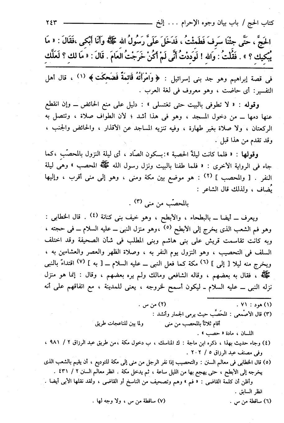 (¬5) قال الخطابى فى معالم السنن: والتحصيب إذا نفر الرجل من منى إلى مكة للتوديع، أن يقيم بالشعب الذى يخرجه إلى الأبطح، حتى يهجع بها من الليل ساعة، ثم يدخل مكة. انظر معالم السنن 2/ 431.