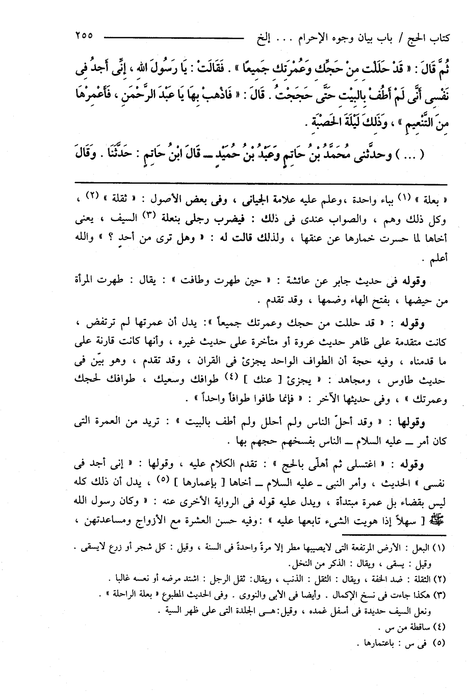 (¬3) هكذا جاءت فى نسخ الإكمال. وأيضاً فى الأبى والنووى. وفى الحديث المطبوع " بعلة الراحلة ".
