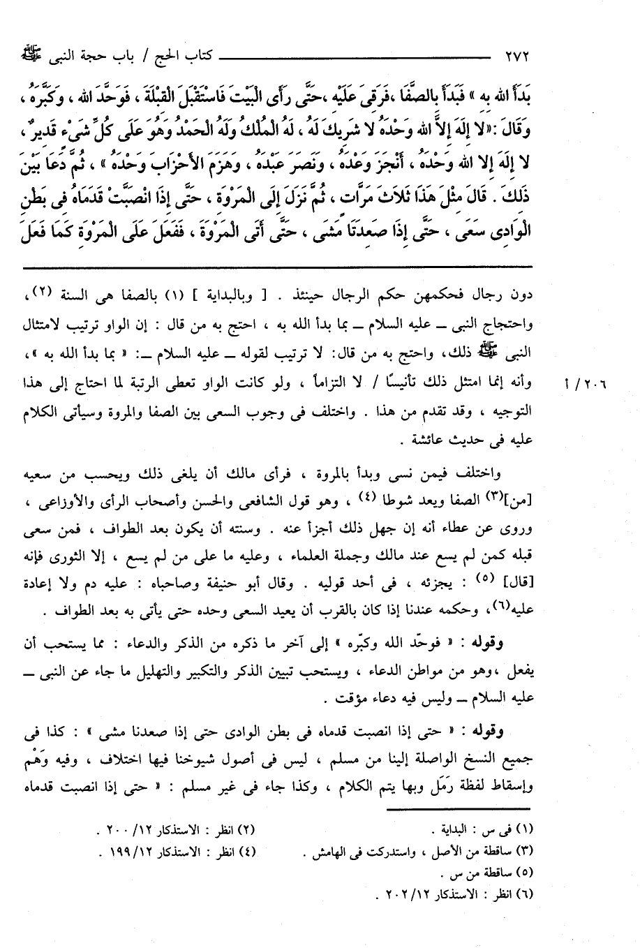 دون رجال فحكمهن حكم الرجال حينئذ. [وبالبداية] (¬1) بالصفا هى السنة (¬2)، واحتجاج النبى - عليه السلام - بما بدأ الله به، احتج به من قال: إن الواو ترتيب لامتثال النبى صَلَّى اللهُ عَلَيْهِ وَسَلَّمَ ذلك، واحتج به من قال: لا ترتيب لقوله - عليه السلام -: " بما بدأ الله به "، وأنه إنما امتثل ذلك تأنيسًا لا التزاماً، ولو كانت الواو تعطى الرتبة لما احتاج إلى هذا التوجيه، وقد تقدم من هذا. واختلف فى وجوب السعى بين الصفا والمروة وسيأتى الكلام عليه فى حديث عائشة.