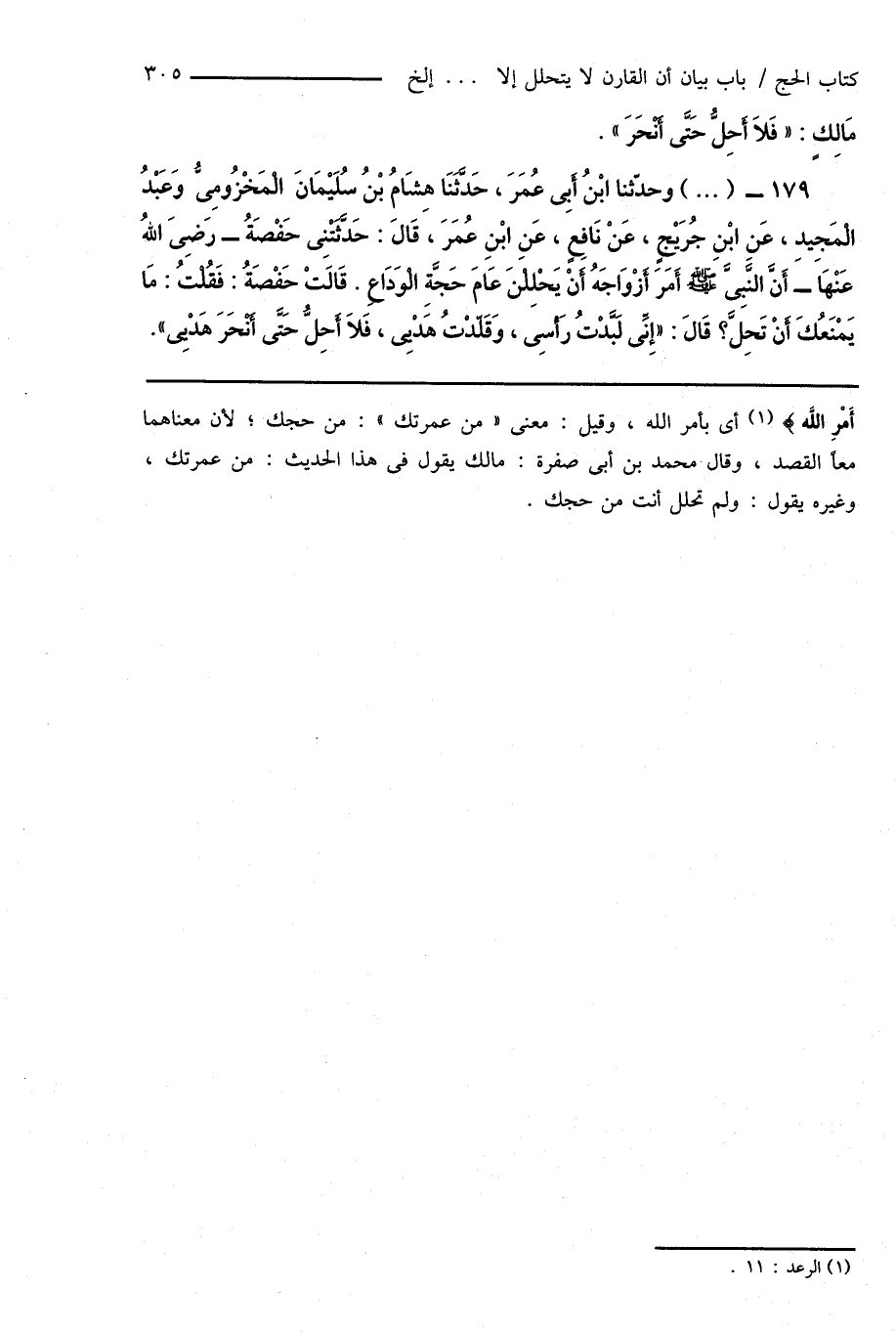 مَالِكٍ: " فَلَا أَحِلُّ حَتَّى أَنْحَرَ ".