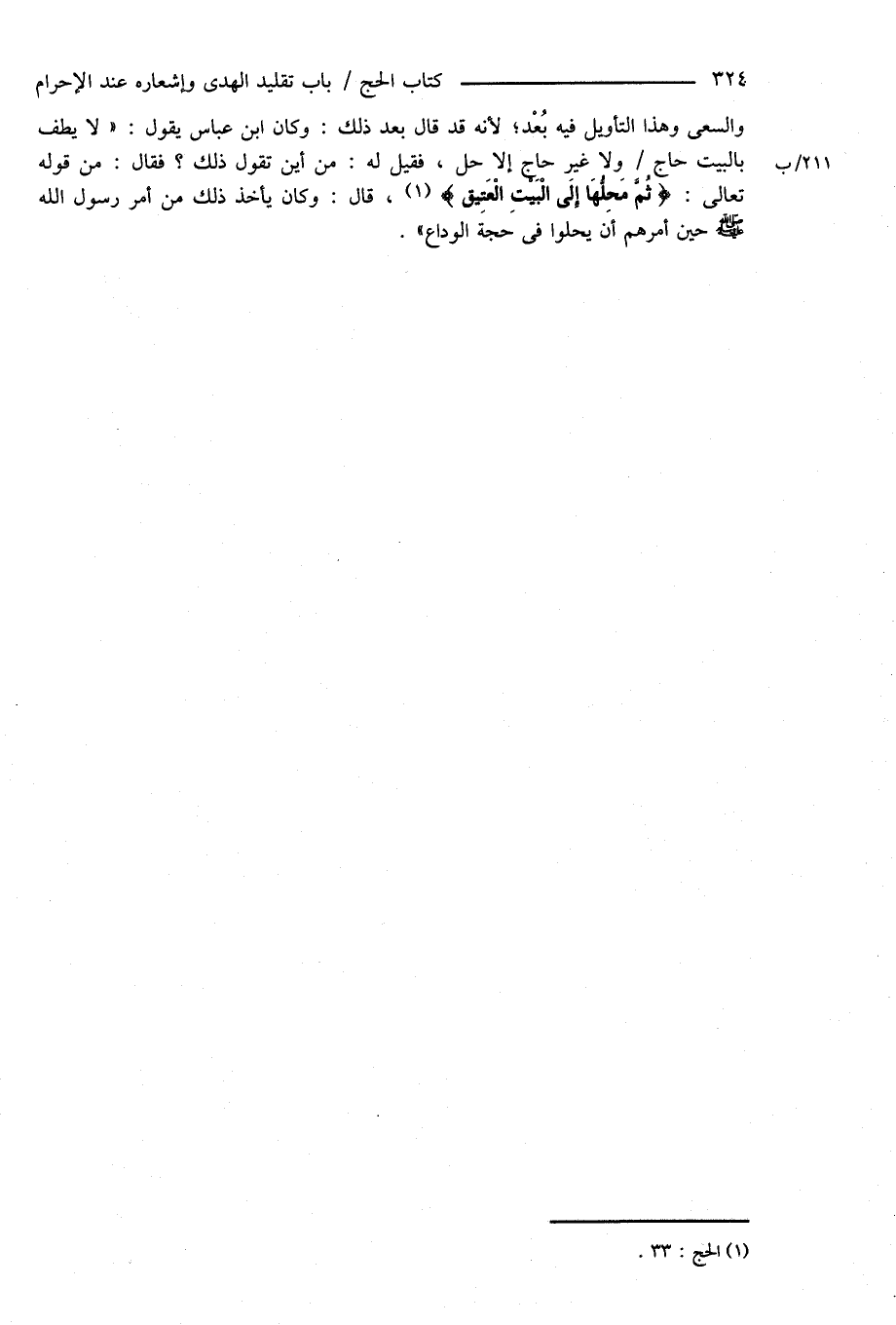 والسعى وهذا التأويل فيه بُعْد؛ لأنه قد قال بعد ذلك: وكان ابن عباس يقول: " لا يطف بالبيت حاج ولا غير حاج إلا حل، فقيل له: من أين تقول ذلك؟ فقال: من قوله تعالى: {ثُمَّ مَحِلُّهَا إِلَى الْبَيْتِ الْعَتِيق} (¬1)، قال: وكان يأخذ ذلك من أمر رسول الله صَلَّى اللهُ عَلَيْهِ وَسَلَّمَ حين أمرهم أن يحلوا فى حجة الوداع ".