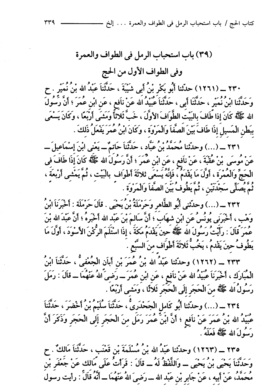 (39) باب استحباب الرمل فى الطواف والعمرة وفى الطواف الأول من الحج