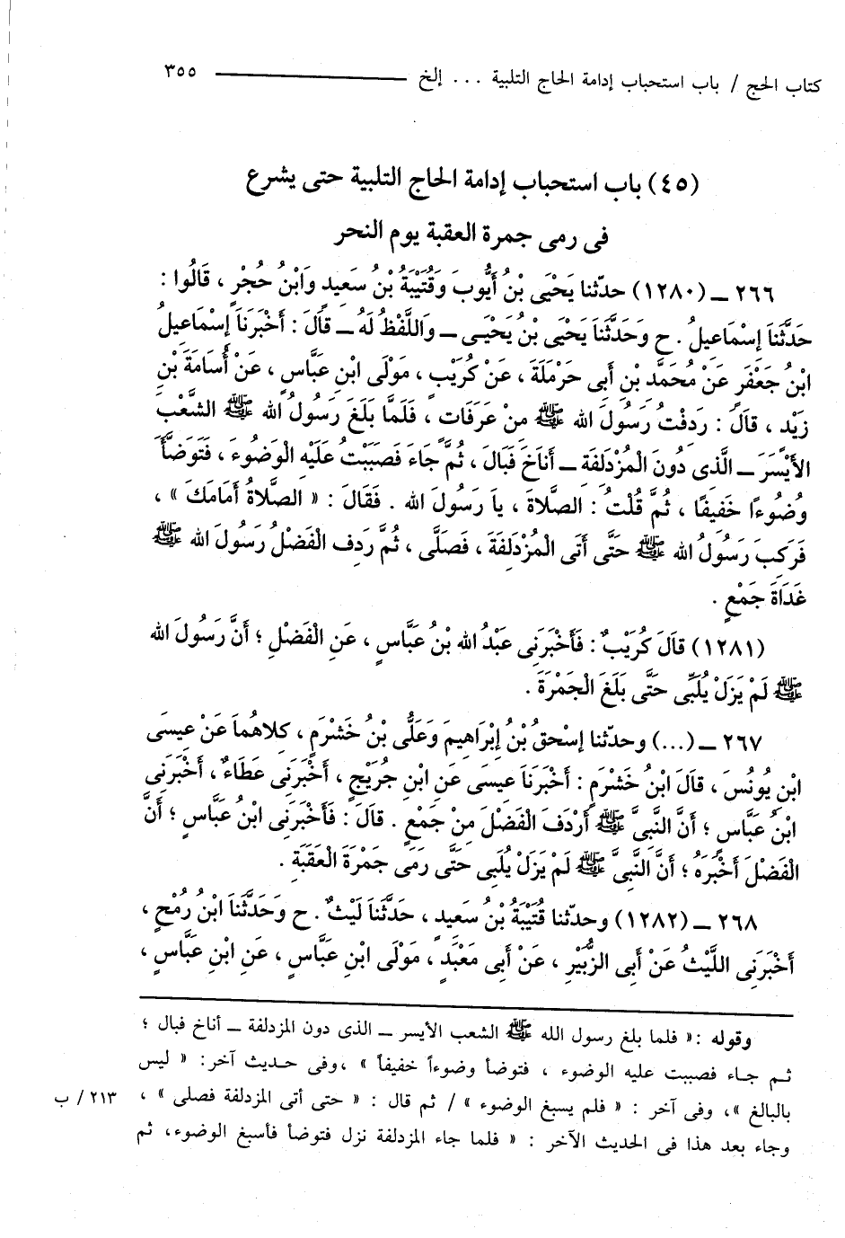 (45) باب استحباب إدامة الحاج التلبية حتى يشرع فى رمى جمرة العقبة يوم النحر
