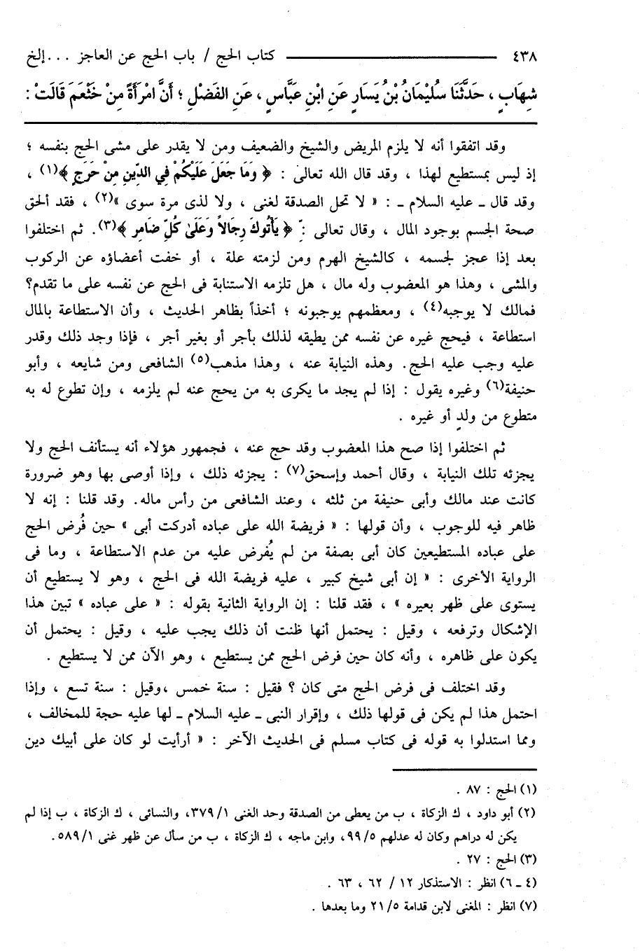(¬7) انظر: المغنى لابن قدامة 5/ 21 وما بعدها.