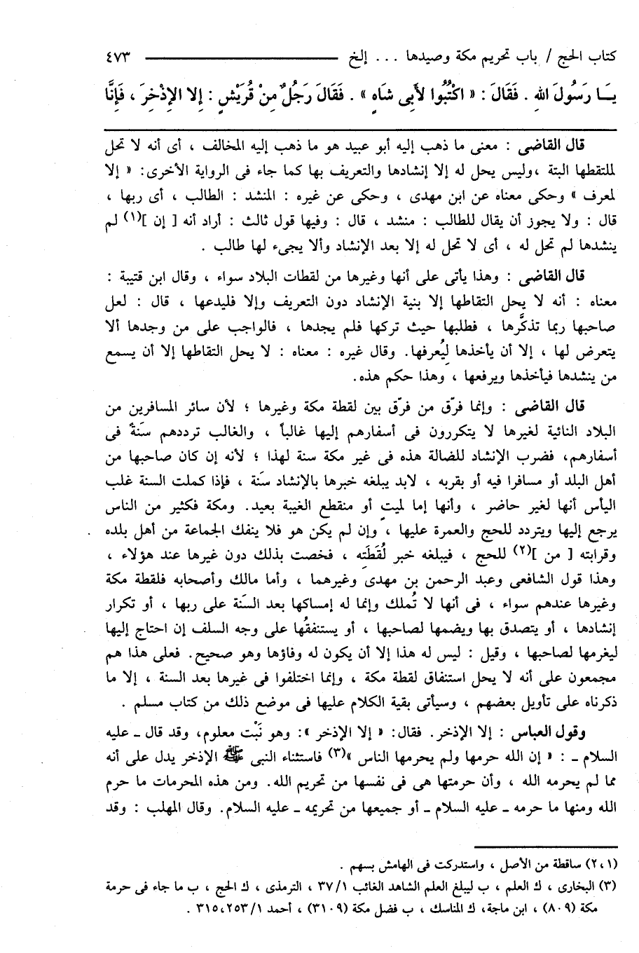 (¬3) البخارى، ك العلم، ب ليبلغ العلم الشاهد الغائب 1/ 37، الترمذى، ك الحج، ب ما جاء فى حرمة مكة (809)، ابن ماجة، ك المناسك، ب فضل مكة (3109)، أحمد 1/ 253، 315.