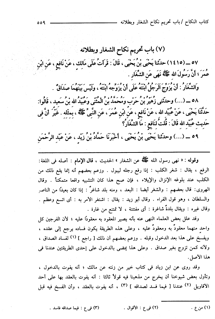 (7) باب تحريم نكاح الشغار وبطلانه