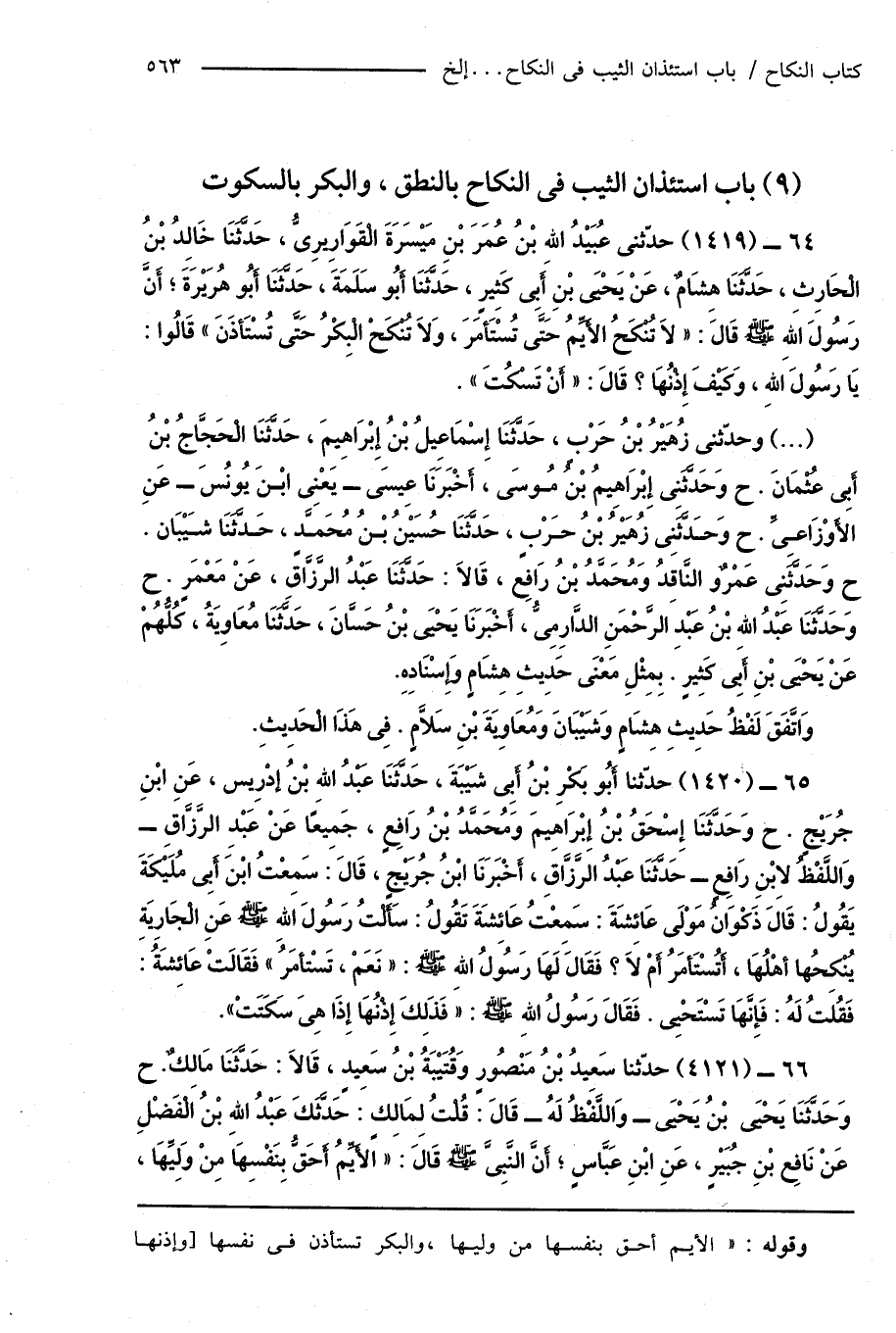 (9) باب استئذان الثيب فى النكاح بالنطق، والبكر بالسكوت