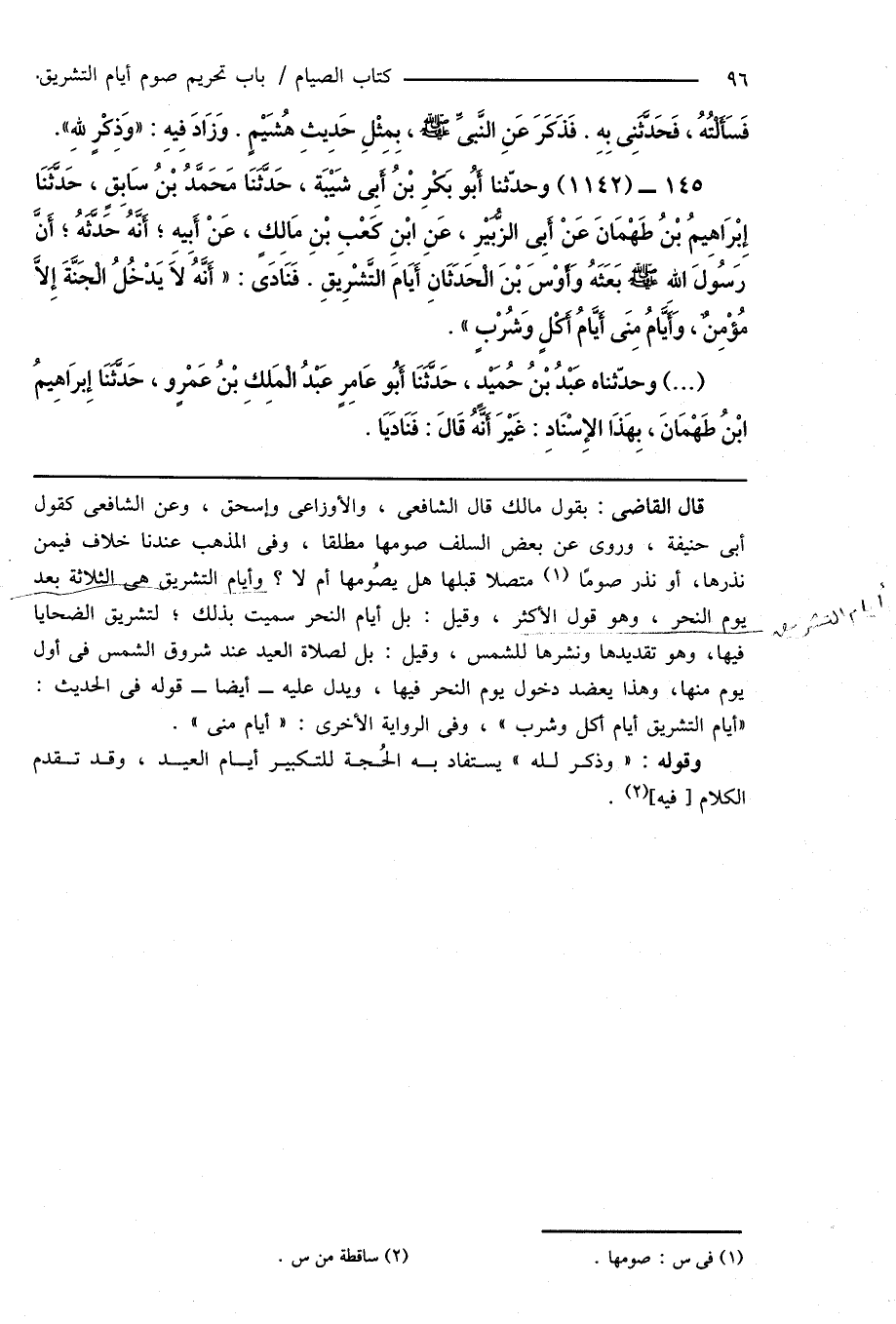 قال القاضى: بقول مالك قال الشافعى، والأوزاعى وإسحاق، وعن الشافعى كقول أبى حنيفة، وروى عن بعض السلف صومها مطلقاً، وفى المذهب عندنا خلاف فيمن نذرها، أو نذر صومًا (¬1) متصلاً قبلها هل يصُومها أم لا؟ وأيام التشريق هى الثلاثة بعد يوم النحر وهو قول الأكثر، وقيل: بل أيام النحر سميت بذلك؛ لتشريق الضحايا فيها، وهو تقديدها ونشرها للشمس، وقيل: بل لصلاة العيد عند شروق الشمس فى أول يوم منها، وهذا يعضد دخول يوم النحر فيها، ويدل عليه - أيضاً - قوله فى الحديث: " أيام التشريق أيام أكل وشرب "، وفى الرواية الأخرى: " أيام منى ".