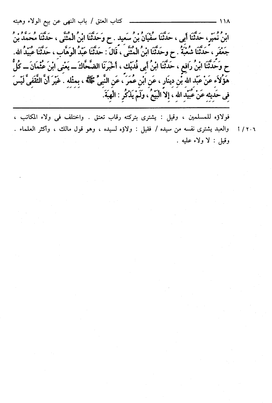 ابْنُ نُمَيْرٍ، حَدَّثَنَا أَبِى، حَدَّثَنَا سُفْيَانُ بْنُ سَعِيدٍ. ح وَحَدَّثَنَا ابْنُ الْمُثَنَّى، حَدَّثَنَا مُحَمَّدُ بْنُ جَعْفَرٍ، حَدَّثَنَا شُعْبَةُ. ح وحَدثنَا ابْنُ الْمُثَنَّى، قَالَ: حَدَّثَنَا عَبْدُ الْوَهَّابِ، حَدَّثَنَا عُبَيْدُ اللهِ. ح وَحَدَّثَنَا ابْنُ رَافِعٍ، حَدَّثَنَا ابْنُ أَبِى فُدَيْكٍ، أَخْبَرَنَا الضَّحَّاكَ - يَعْنِى ابْنَ عُثْمَانَ - كُلُّ هَؤُلَاءِ عَنْ عَبْدِ اللهِ بْنِ دِينَارٍ، عَنِ ابْنِ عُمَرَ، عَنِ النَّبِىِّ صَلَّى اللهُ عَلَيْهِ وَسَلَّمَ، بِمِثْلِهِ. غَيْرَ أَنَّ الثَّقَفِىَّ لَيْسَ فِى حَدِيثِهِ عَنْ عُبَيْدِ اللهِ، إِلا الْبَيْعُ، وَلَمْ يَذْكُرِ: الْهِبَةَ.