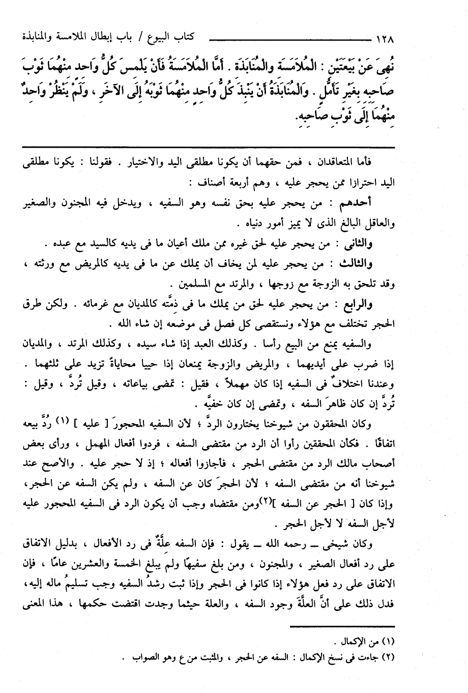 (¬2) جاءت فى نسخ الإكمال: السفه عن الحجر، والمثبت من ع وهو الصواب.