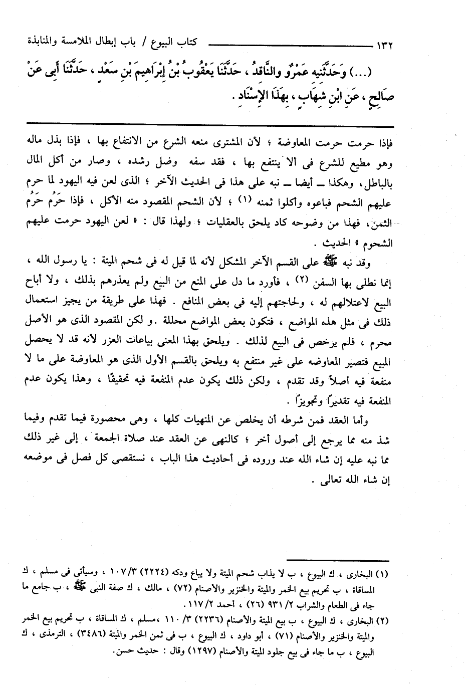 (¬2) البخارى، ك البيوع، ب بيع الميتة والأصنام (2236) 3/ 110، مسلم، ك المساقاة، ب تحريم بيع الخمر والميتة والخنزير والأصنام (71)، أبو داود، ك البيوع، ب فى ثمن الخمر والميتة (3486)، الترمذى، ك البيوع، ب ما جاء فى بيع جلود الميتة والأصنام (1297) وقال: حديث حسن.