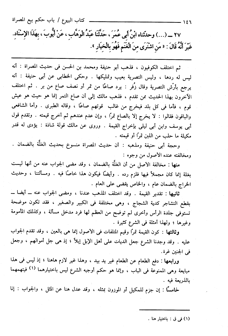 27 - (...) وحدّثناه ابْنُ أَبِى عُمَرَ، حَدَّثَنَا عَبْدُ الْوَهَّابِ، عَنْ أَيُّوبَ، بِهَذَا الإِسْنَادِ. غَيْرَ أَنَّهُ قَالَ: " مَنِ اشْتَرَى مِنَ الْغَنَمِ فَهُوَ بِالْخِيَارِ ".