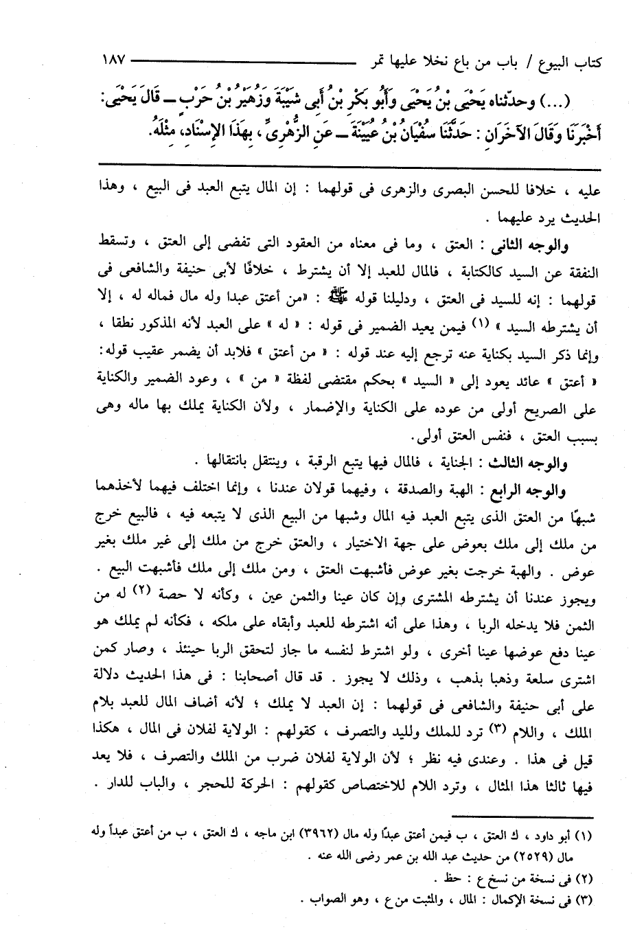 (¬1) أبو داود، ك العتق، ب فيمن أعتق عبداً وله مال (3962) ابن ماجه، ك العتق، ب من أعتق عبداً وله مال (2529) من حديث عبد الله بن عمر رضى الله عنه.