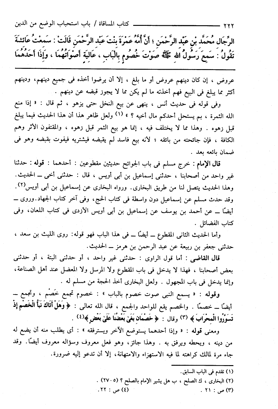 (¬2) البخارى، ك الصلح، ب هل يشير الإمام بالصلح؟ (2705).