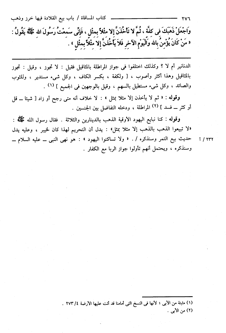 (¬1) مثبتة من الأبى؛ لأنها فى النسخ التى أمامنا قد أتت عليها الأرضة 4/ 273.