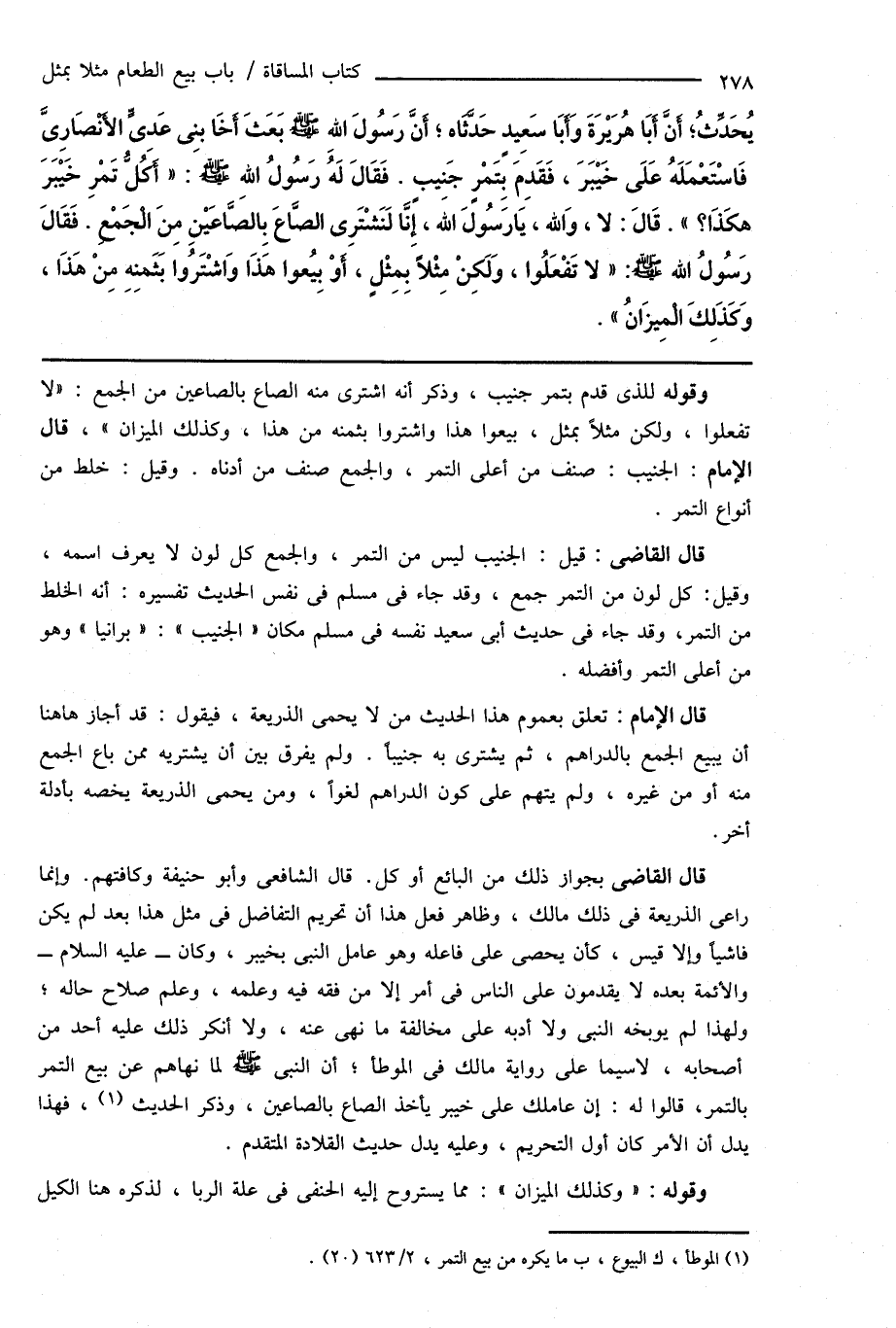 (¬1) الموطأ، ك البيوع، ب ما يكره من بيع التمر، 2/ 623 (20).