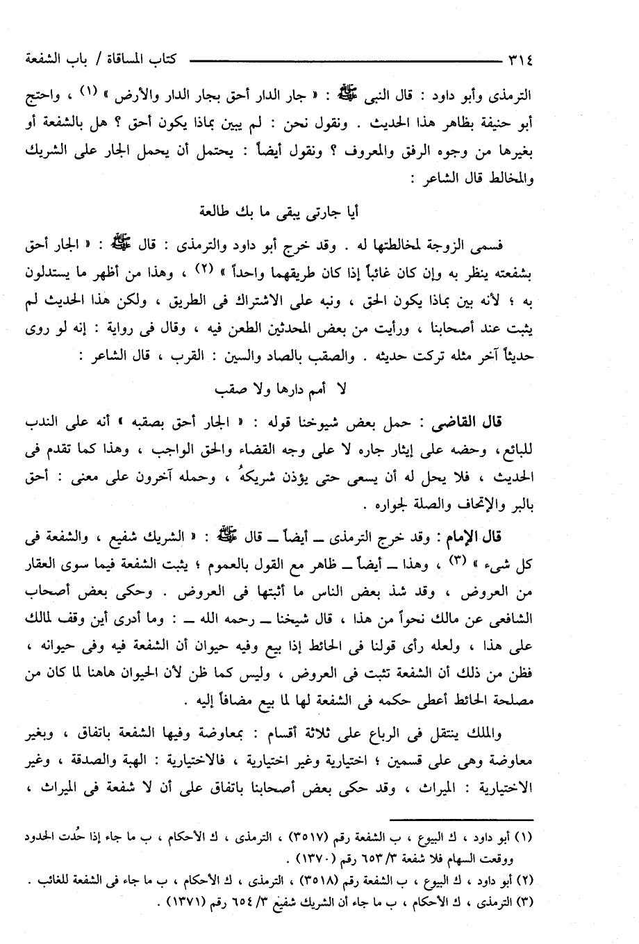 (¬1) أبو داود، ك البيوع، ب الشفعة رقم (3517)، الترمذى، ك الأحكام، ب ما جاء إذا حُدت الحدود ووقعت السهام فلا شفعة رقم 653 رقم (1370).