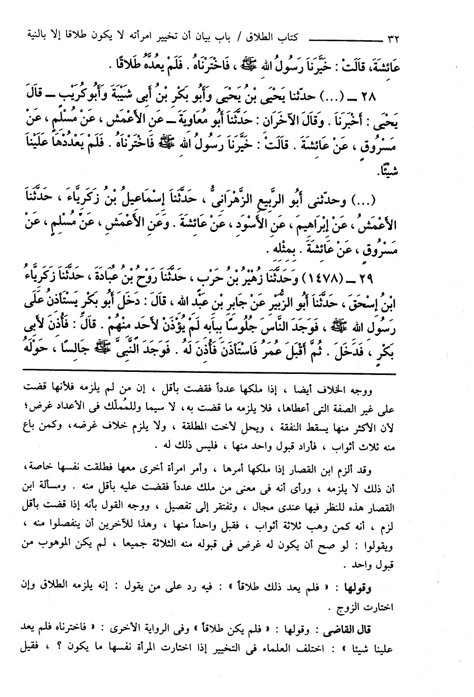 28 - (...) حدّثنا يَحْيَى بْنُ يَحْيَى وَأَبُو بَكْرِ بْنُ أَبِى شَيْبَةَ وَأَبُو كُرَيْبٍ - قَالَ يَحْيَى: أَخْبَرَنَا. وَقَالَ الآخَرَانِ: حَدَّثَنَا أَبُو مُعَاوِيَةَ - عَنِ الأَعْمَشِ، عَنْ مُسْلِمٍ، عَنْ مَسْرُوقٍ، عَنْ عَائِشَةَ. قَالَتْ: خَيَّرَنَا رَسُولُ اللهِ صَلَّى اللهُ عَلَيْهِ وَسَلَّمَ فَاخْتَرْنَاهُ. فَلَمْ يَعْدُدْهَا عَلَيْنَا شَيْئًا.