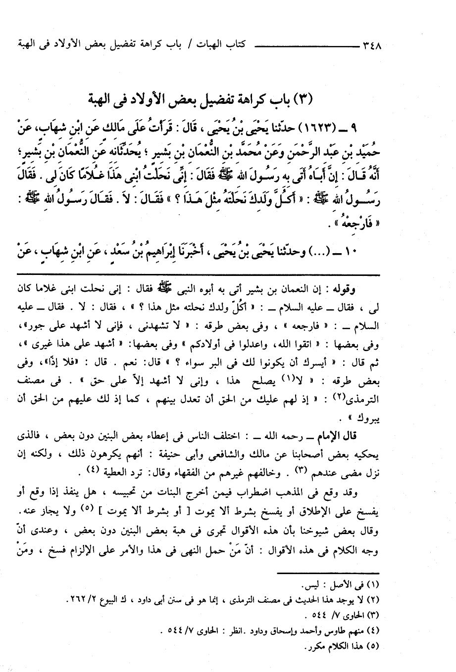 (3) باب كراهة تفضيل بعض الأولاد فى الهبة