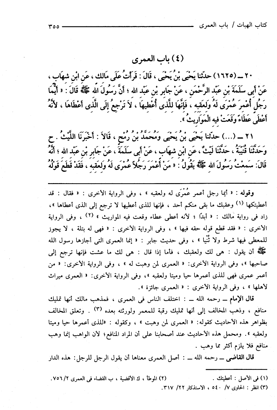 (¬2) الموطأ، ك الأقضية، ب القضاء فى العمرى 2/ 756.